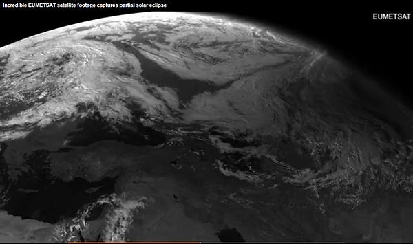A Eumetsat image of the moons shadow during a partial solar eclipse and the associated moisture.